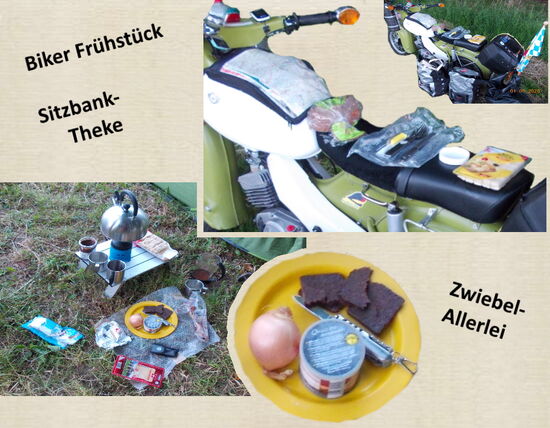 Wene rollte also leise sein Rehlein mit dem Auspüfflein am mein Zelt und Kickte den Motor an. "Reng, deng, deng, deng."