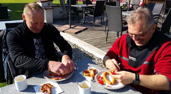 Und siehe da, er machte uns sogar zu den Butterbrezeln ein paar Wienerle warm.