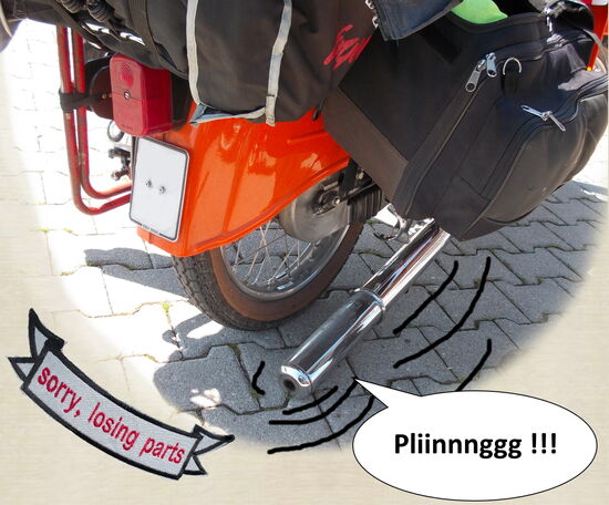 Der Auspufftopf der Schwalbe machte sich mit einem lauten Plinnnggg vom Acker... oder vielmehr auf die Straße.