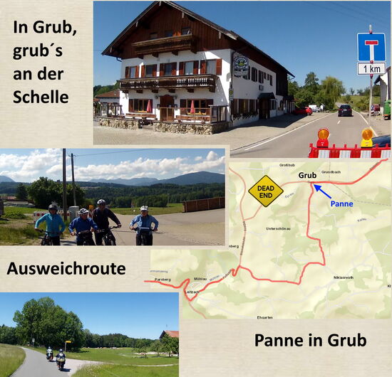 Wir dängelten und knatterten was die Mühlen hergaben, bis wir nach Grub kamen.