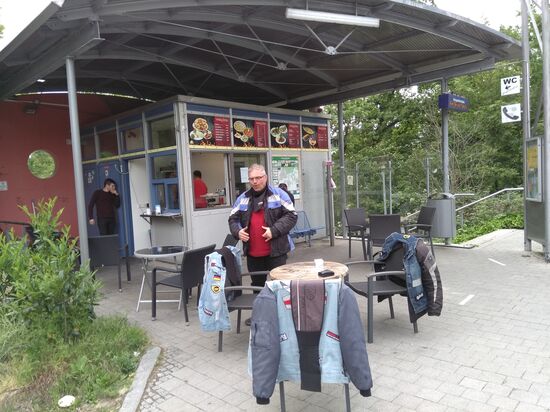 Nun hatte ich Glück im Unglück. Hier an der Stadt gab es keine Möglichkeit in den Wald zu schnäuzen. Der Imbiss hatte auch kein WC, aber unten ... keine 20 Meter am Bahnsteig ... gab es ein WC. ... und das, man mag es kaum glauben, war sogar sehr sauber. Also wurde in letzter Minute alles passend Vorbereitet. Eine Lage WC Papier auf die Brille und dann folgte sauber durchrußen.