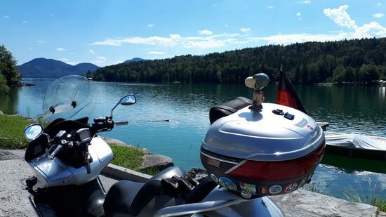 Die Grenze zu Österreich ist kaum noch zu erkennen und so schwingen wir uns gemütlich entlang der kurven- und aussichtsreichen Uferstraße des Plansees. Der herrlich gelegene Bergsee gehört eigentlich zum Pflichtprogramm aller Motorrollerfahrer. Zeit für ein Foto muss sein. Von einer nahen Weide läuten Kuhglocken herüber und in der Ferne brummt ein Traktor.