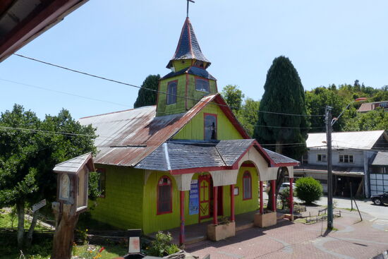 Chiloe erreicht man nach einer weniger als einstündigen Fährfahrt. Die Insel gilt eigentlich als Schlechtwettergebiet, aber wir  hatten Glück:  3 Tage bestes Wetter.  Die Sehenswürdigkeiten sind hier die zum Unesco  Weltkulturerbe gehörenden Holzkirchen. Unser Quartier war für alle 3 Nächte in Ancud das Hotel Ancud Petit, sehr einfach und preisgünstig, aber nett und gemütlich.