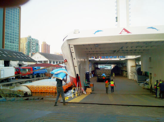 Ich bin also irgendwann abends in den Hafen von Daressalam gefahren und habe mein Motorrad eingecheckt. Der Spediteure wollte dafür 95.000 TZS/ 34 € haben. Später habe ich erfahren, dass es wohl eigentlich nur 60.000 kostet, na egal. Dann musste ich aber auch noch ein Ticket für mich selber kaufen. Und da war zum ersten mal meine tansanische Fahrerlaubnis hilfreich. Ich zeigte sie vor und statt 35 USD kostete es jetzt nur 23.000 TZS/ 10 USD. Gegen 20 Uhr kam der Zoll mit seinen Drogenhunden. Wir mussten unser Gepäck in Reihe aufstellen. Bei sowas geht mir immer der Ars... auf Grundeis. Mein Motorrad stand stundenlang unbeaufsichtigt in einer Halle rum. Wenn mir da jemand was unterschiebt, war`s das. Ich glaube nicht, dass ich den Knast hier überleben würde. Aber es war alles sauber.