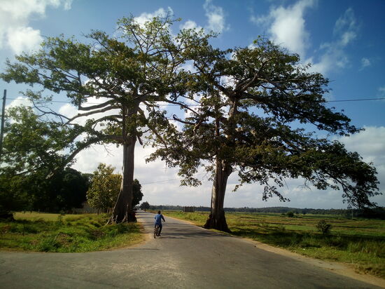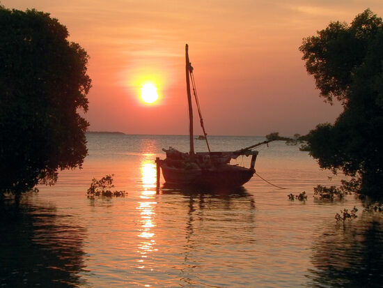 6 Uhr sitze ich auf dem Motorrad. Ich habe die ersten 1000 km runter. Es ist fast noch etwas zu kalt. Eigentlich muss ich nach Stone Town , weil ich bei der Ankunft in Sansibar den Einreisestempel vergessen habe. Außerdem läuft mein Datenvolumen bei Vodacom ab und muss verlängert werden. Da aber noch viel Zeit ist, bis die Geschäfte öffnen, fahre ich an die Ostküste. Der nördliche Mittelteil der Insel gefällt mir besonders gut. Hier gibt es keinen Tourismus und das das dörfliche Leben verläuft wie eh und je in Ruhe und Einfachheit . Überall steigen Rauchschwaden durch die Palmenwälder und zaubern den würzigen Duft des Erwachens in den rötlichen Sonnenaufgang.