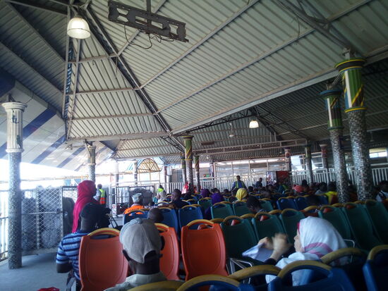 Am nächsten Tag gehe ich zur Fähre. Beim Ticketkauf zeige ich wieder meine Tansania Fahrerlaubnis vor und muss statt 40 USD nur 35.000 TZS/ 15 USD zahlen. Ich glaube, jeder kann sich jetzt denken, wo dieses Geld später hingeht. Ich setze mich in den Warteraum und beobachte das bunte Treiben. Etwas später bringt man mich in die VIP Lounge. Die meisten tragen hier eine Maske.
