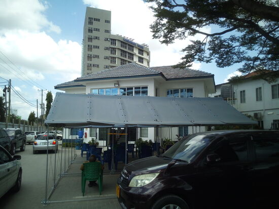 Dann bin ich zum Krankenhaus gefahren, um mich nach den Öffnungszeiten zu erkundigen, in meinem Fall das Agakhan Hospital .