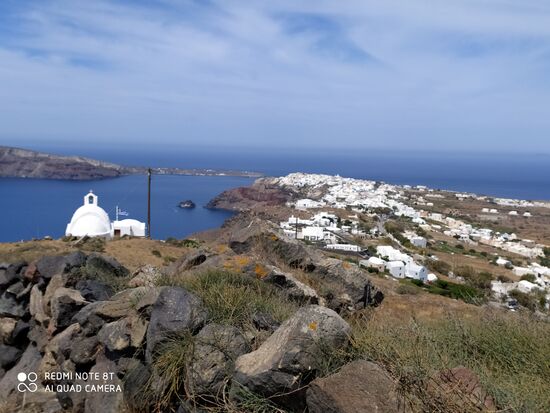 Das weiss leuchtet von Weitem und ist ein starker Kontrast zu dem schroffen vulkanischen Gestein unterwegs. Satt sehen ist unmöglich. So etwas gibt es nicht auf Santorini.