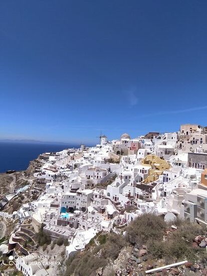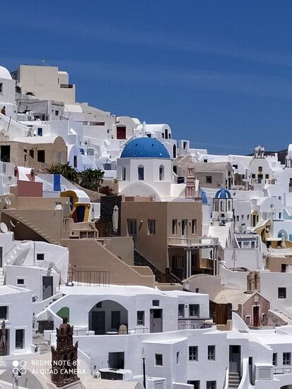 Wieder besticht das Blau das Hitze abweisende Weiss der Häuser. Es geht nicht anders, als sich in dieses schöne Dorf gründlich zu verlieben..