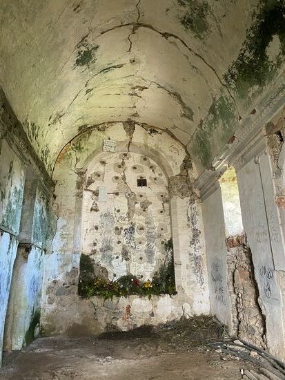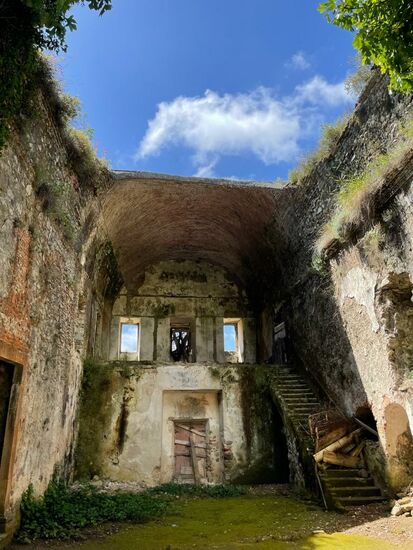 Fliesenreste befinden sich noch an den Wänden—wer den Film „der englische Patient“ gesehen hat, glaubt dass die Szene in der der Soldat gepflegt wird, hier gedreht wurde