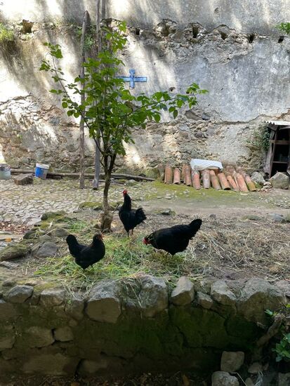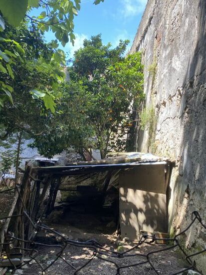 In der Ruine hat sich eine Familie einquartiert—ein alter Mann winkt uns heran und ermutigt uns, den inneren Bereich zu besichtigen.