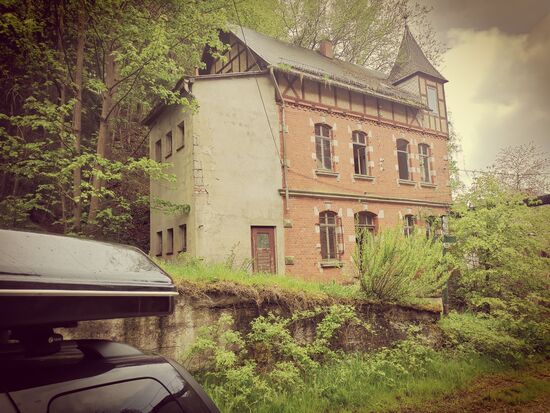 Auf meiner Suche nach dem Turm Thüringer Warte Lauenstein endet mein Weg per googlemaps zwischen total zerfallenen Häusern - geisterhaft. Leider ist das Schild "Durchfahrt verboten" noch nicht sooo verfallen, dass ich es nicht mehr sehe , also endet mein Versuch hier, da ich zwar noch einen Hinweis zum Turm sehe, allerdings per pedes den Weg fortsetzen müsste und dazu reicht die Zeit nicht und auch das Wetter hält mal wieder Nässe von oben parat.