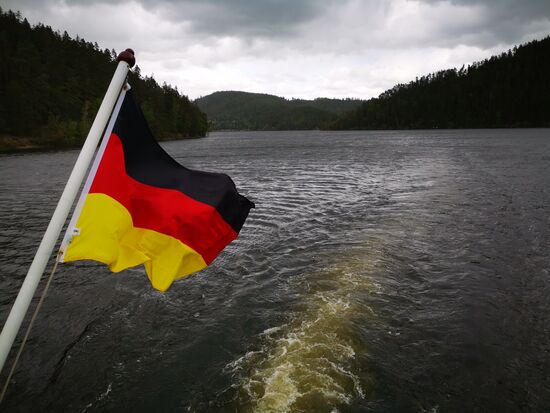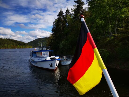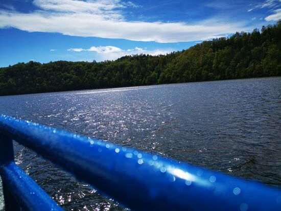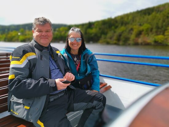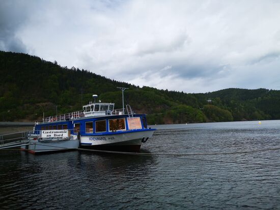 Am Hohenwarte Stausee treffe ich mich wieder mit Michael. Wir rechnen gar nicht damit, dass hier Bootstouren durchgeführt werden - aber als wir sehen, dass ein Ausflugsboot anlegt und Leute aussteigen, entscheiden wir ganz spontan, eine 1,5 Stunden dauernde Tour mit der MS Saaletal mitzumachen. Der Hohenwarte Stausee ist der drittgrößte Stausee Deutschlands und bei dieser Tour wird ca. ein Drittel abgefahren. www.fahrgastschiffahrt-hohenwarte.de
