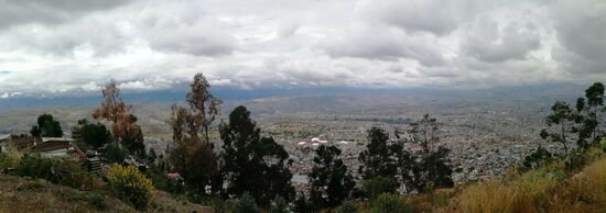 Heute geht es zu den Canones de Qorihuilca. Das Wetter ist nicht besonders gut, wir nehmen lieber Regenjacken mit. Und tatsächlich fängt es an regnen, noch bevor wir den Bus corredor azul an der Kreuzung Calle Deporte und Jirón Quinua Richtung el rancho de Bruno nehmen. Wir fahren bis zur Endhaltestelle und gehen anschließend  den Weg nach oben, vorbei an Rancho de Bruno. Wir folgen der lehmigen, matschigen Straße, der Regen tropft uns von der Kapuze und den Ärmeln. Wegen des Regens wirkt die Umgebung grau und traurig. Irgendwann kommen wir an einem Schild an, der die Cañones de Qorihuilca ankündigt. Nach rechts führt ein schmaler Weg den wir nehmen, doch wir finden keinen Weg nach unten in den Cañon. Also gehen wir zurück zur Straße und folgen dieser bis zur nächsten Kurve und halten Ausschau nach einem Einstieg. Wir betreten einen kleinen Friedhof und finden am dessen Ende einen Abstieg über eine leicht zerfallene Steinmauer. Prima, jetzt kann es los gehen