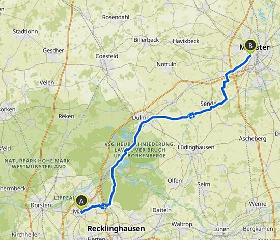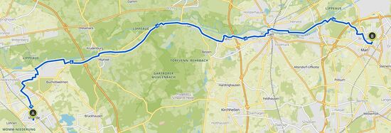 Von Voerde nach Marl. Ja, es sind nur ca. 44 km, aber zum Einfahren für die erste Etappe soll es reichen und es ist URLAUB!