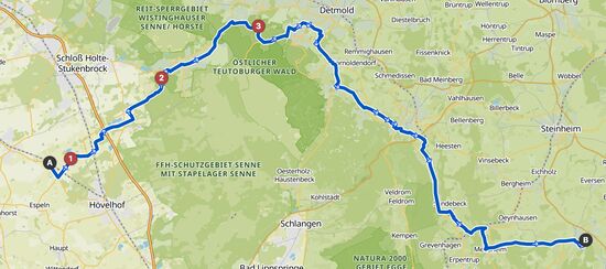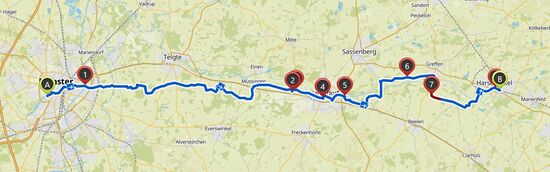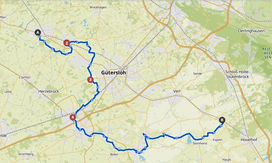 Von Harsewinkel nach Hövelöhof ca. 62 km.