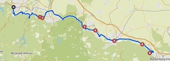 Von Blankenburg (Michaelstein) nach Staßfurt ca. 65 km.