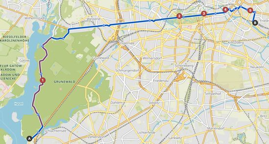 Von Wannsee nach Berlin Ostbahnhof. ca. 30 km ausrollen