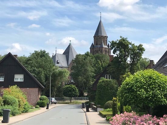 Geprägt von viel Wald und Wiesen sind auch diese ca.65 km gut zu bezwingen. In Marl gibt es Baustellenbedingt erstmal eine kleine Irritation, die aber schnell beseitigt ist. Auch in Haltern muss ich kurz hinter dem See eine Umleitung fahren, die allerdings gut ausgeschildert war. Die Wege und Straßen sind gut zu befahren, ich kreuze den Dortmund-Ems-Kanal und fahre vor und nach Senden ein Stück am Kanal entlang. Leider sind viele der Dörfer so klein, dass sie noch nicht mal eine Kneipe haben, aber ich habe im Hotel gut gefrühstückt und für den Flüssigkeitshaushalt auch Wasser dabei. Kurz hinter Senden statte ich dann dem Hof Grothues-Potthoff einen Besuch ab und gönne mir eine schöne Pause. Über kleine Nebenstraßen erreiche ich am frühen Nachmittag Münster. Der Stadtrundgang fällt dem dann doch ankommenden Regen zum Opfer, das werde ich dann morgen früh auf der nächsten Etappe erledigen.