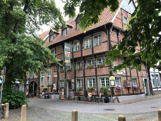 Dann auf schönen Wegen raus aus der Stadt, nochmal den Dortmund-Ems-Kanal queren, an Telgte vorbei nach Warendorf. Warendorf hat einen historischen Marktplatz und ganz in der Nähe ein historisches Brauhaus. Leider wird dort nicht mehr gebraut, aber es gibt das gute Pott´s in verschiedenen Farben. Also kurze Rast und dann den Endspurt nach Harsewinkel.