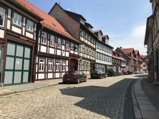 Heute habe ich erfahren, dass ich auf berühmten Wegen unterwegs bin. Der alte Goethe hat den Harz mehrfach besucht und war tatsächlich an einigen Stellen, die ich auch besuche. Jedes Mal hat er den Brocken bestiegen (lasse ich aus) und zum ersten Mal war er 1777 hier. Ich war heute in Goslar, Oker und Ilsenburg, von Goslar habe ich gestern ein Bild des Gasthauses gezeigt, wo der Herr Geheimrat getrunken hat, heute ein Bild von dem Gebäude in Oker. Aber ich schweife ab, der Weg heute war sehr schön, aber manchmal auch „undurchsichtig“. Einige Hinweisschilder habe ich wohl nicht gesehen, dann stand ich plötzlich auf einem sehr schmalen Weg vor einer Furt und war nicht sicher ob ich richtig bin, zum Glück kam kurz hinter der Furt ein Hinweisschild, und so konnte ich meinen schönen Weg fortsetzen. Ich gehe davon aus, dass ich die größten Steigungen hinter mir gelassen habe und es ab jetzt Richtung Berlin bergab geht (bis auf kleinere Hügel).