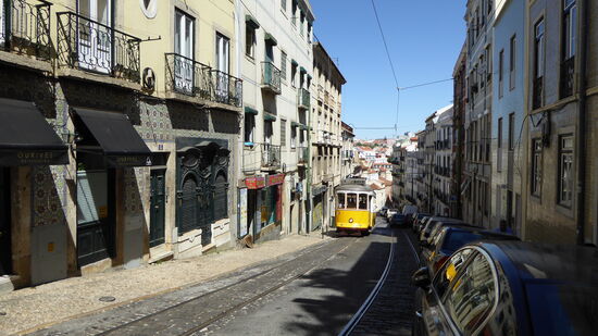 Am nächsten Morgen machten wir Sightseeing mit der "Achterzwanzger" (Tram No.28). Bergauf, bergab quält sich quitschend und ratternd die alte Tram durch die Stadt. Das gehört unbedingt zu einem Lissabon-Besuch. Am Abend schlenderten wir durch die alten Viertel Graca und Alfama und aßen wieder fein im Bistro "Gato Pardo" bei einem schweizerdeutschsprechenden Portugiesen.