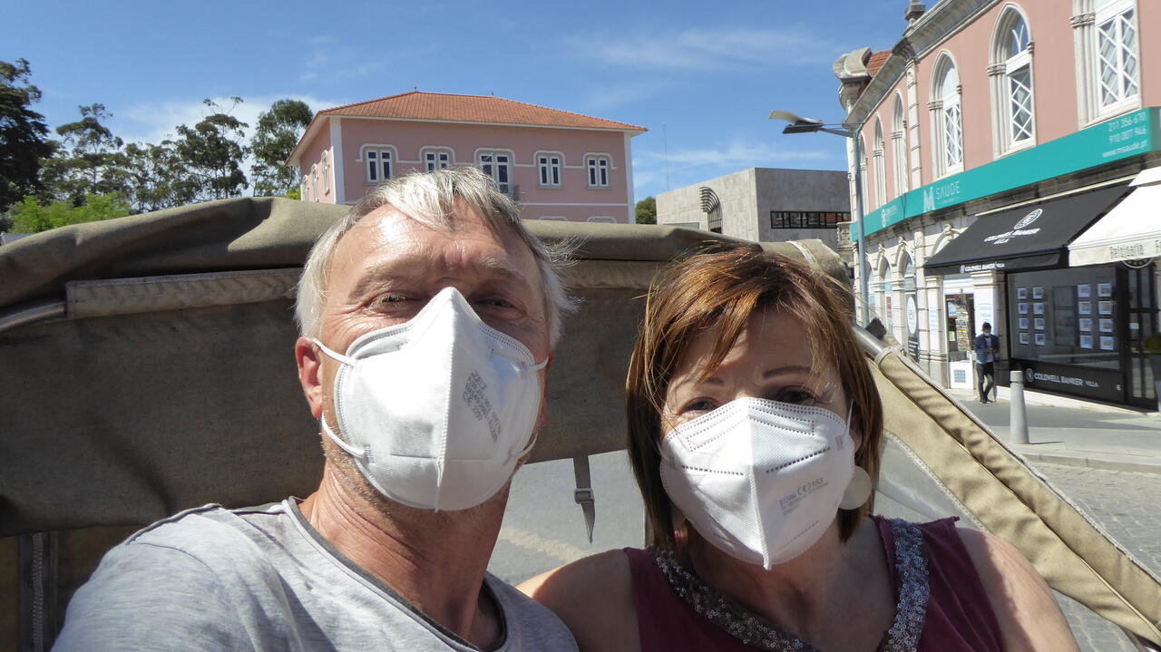 Zum Abschluss unseres Sintra-Ausfluges stiegen wir in ein TukTuk und rasten den Berg hinauf zu einem Fotoshooting. Gottseidank hatte das Fahrzeug einen guten Fahrer und gute Bremsen, denn hinunter mussten wir auch wieder. (Sonderpreis für uns 15 statt EUR 20,--, da wir asiatische TukTuk-Verhandlungstaktik beherrschten).