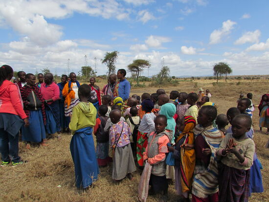 Vor der "Schule" versammeln sich immer mehr Massai Frauen in ihren karierten Gewändern. Ich bin zunächst verwundert und kann es nicht so recht einordnen. Doch dann sagt Nancy, sie seien gekommen um für mich zu singen. Wenig später stehe ich dann vor ihnen während sie ihre traditionellen Lieder singen, tanzen, springen, klatschen und auch die vielen Kinder schließen sich dem an. Plötzlich schiebt Nancy mich behutsam in die Mitte der Frauen, sie singen und johlen immer intensiver und lauter, bis ich schließlich eine grünkarierte Shuka umgelegt bekomme.