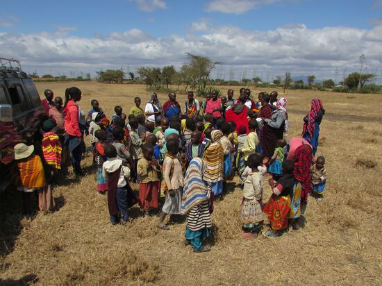 Dann geht es endlich los. Zunächst auf einer großen gut ausgebauten Hauptstraße und dann auf einer staubigen, holprigen Piste direkt in das Gebiet der Massai. Weit und breit kein Tropfen Wasser zu sehen, dafür trockenes Grasland, Schirmakazien und riesige Agaven. Am Wegesrand begegnen uns Frauen und Kinder die unterwegs zur nächsten Wasserquelle sind. Oft brauchen sie stundenlang, ehe sie einen Kanister Wasser nach Hause in ihre Lehmhütte tragen können.