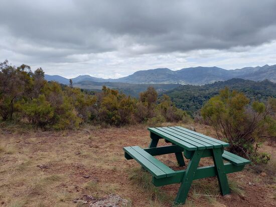 Wenig später liegt die Irente Farm lvor uns. Das dazugehörige Restaurant liegt etwas oberhalb. Dort genießen wir auf einer schönen Terrasse Brot und Käse ehe wir zum Magorota Forest aufbrechen.