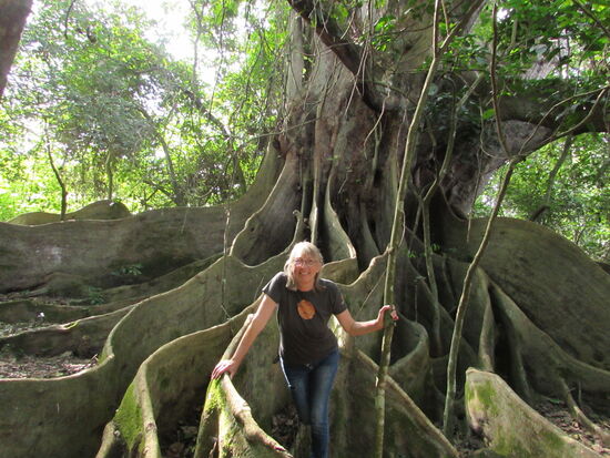 Christopfer und der Guide aus dem Naturschutzpark führt uns zu einem mächtigen, alten Feigen Baum.