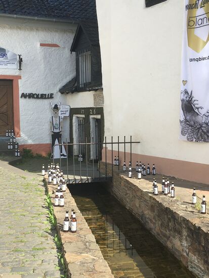 Am heutigen Morgen ist die Präsentation des brandneuen Eifelbieres 'Blanq macht Landlust' direkt an der Ahrquelle.