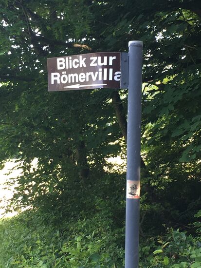 Schließlich erreichen wir die Burg (vgl Unterkapitel) und versuchen anschließend zur Vermeidung der Stufen einen sanft abfallenden Weg in den ort zu finden. Dieser frührt uns dann zu diversen sehenswerten Punkten des Tiergartentunnels (vgl. Unterkapitel) bis wir schließlich den Wald verlassen und noch einen Blick auf die Römervilla (vgl. Unterkapitel) werfen können.