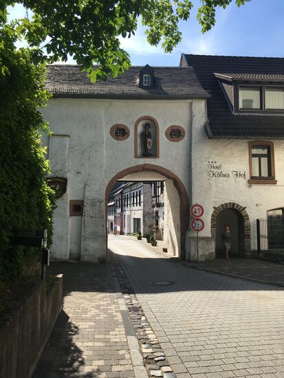 Wir erreichen der Ort wieder am Georgstor auch St. Georgs Porte, Obertor oder auswendiges Tor genannt. Es stellt einen Teil der Erweiterung der Talbefestigung aus dem 17. Jahrhundert dar. Die Räume des Obergeschosses beherbergen das Blankenheimer Karnevalsmuseum.