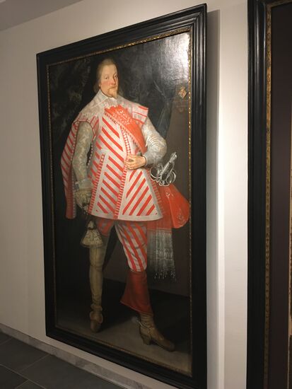 Die beiden zusammengehörenden Ganzkörper-Porträts stammen von einem unbekannten Maler, vermutlich aus dem flämischen Raum, und sind auf das Jahr 1634 datiert. Graf Johann Arnold war zu diesem Zeitpunkt 28 Jahre alt, seine Frau Antonia Elisabeth aus der Linie Manderscheid-Gerolstein ein Jahr jünger. Die Gräfin starb bereits 1638 mit 31 Jahren während der Geburt ihres 11. Kindes, ihr Mann 1644 mit 38 Jahren.