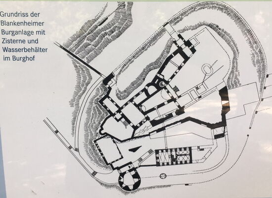 Viele Jahrhunderte haben auf dieser Burg Landesherren, ihre Beamten, Bediensteten und Beschützer gelebt, ein kleiner Hofstaat also. Blankenheim war die Residenz der Grafen von Blankenheim und später der Grafen von Manderscheid. Die Burg ist Anfang des 12.Jahrhunderts über der Ahrquelle errichtet worden, weil die Vorgängeranlage „Alte Burg" bei Blankenheimerdorf zu klein geworden war.