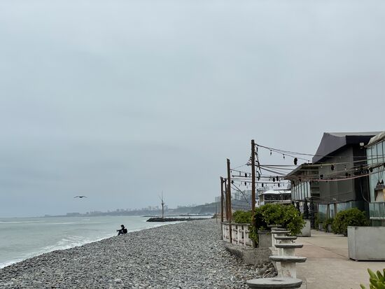 Ich bin jetzt bereits seit zwei Wochen hier und noch nie war ich direkt am Meer. Meine Spaziergänge waren immer oben an der Kante. Nicht dass ich ins Wasser möchte, es scheint mir kalt und wild zu sein, aber ich möchte die Wellen direkt sehen. Ich will heute in einem der wenigen Restaurants direkt am Meer essen. Und ich will heute nicht laufen, ich rufe mir ein UBER zum Restaurant Bahia. Da war ich beim letzten Besuch in Lima. Ein grosses Restaurant direkt am Meer mit offener Terrasse auf die Fussgängerpassage.