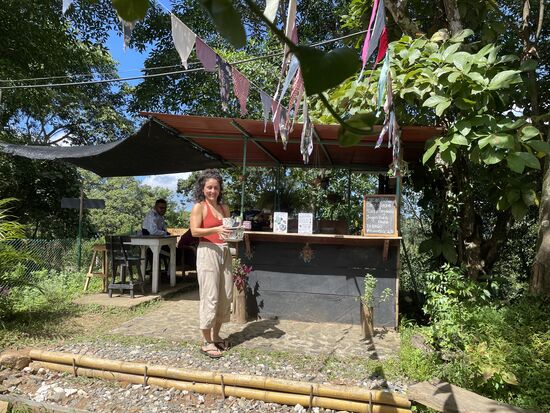 Sie lebt mit ihrem Mann seit ein paar Jahren hier im Dschungel und betreibt ihr kleines Café. Ausserdem verkauft sie ein paar Handarbeiten, Kaffeebohnen aus Minca und selbst gezogene Pflanzen. Wieder so eine spannende Auswanderergeschichte.