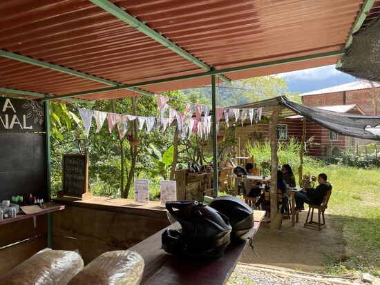 Bevor ich mich wieder auf den Aufstieg hinauf zum Hotel mache, sehe ich mich noch ein wenig im Dorf um. Minca ist ein kleines Dorf. Es gibt unzählige kleine Restaurants, Boutiquen, Tourenanbieter, einfache Unterkünfte, Fincas und diskrete Hotels hinter grossen Toren. Es ist ein Touristenort und war wohl vor der Pandemie komplett überlaufen. Mir ist es gerade recht, dass es im Moment beschaulich und ruhig ist.