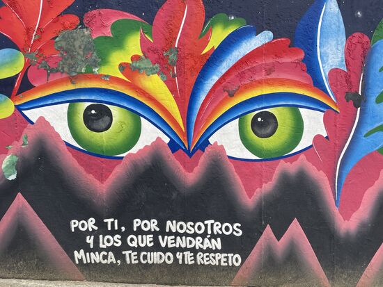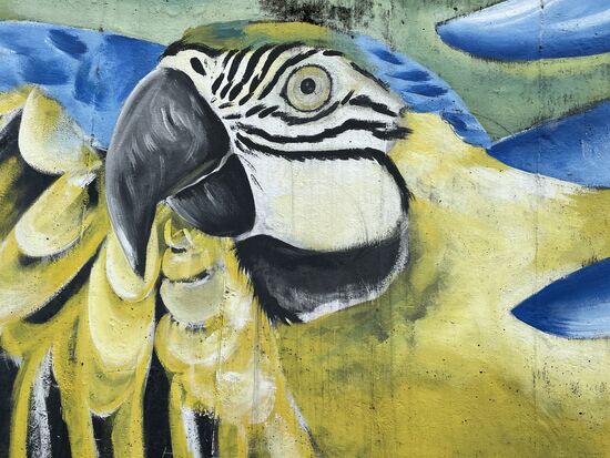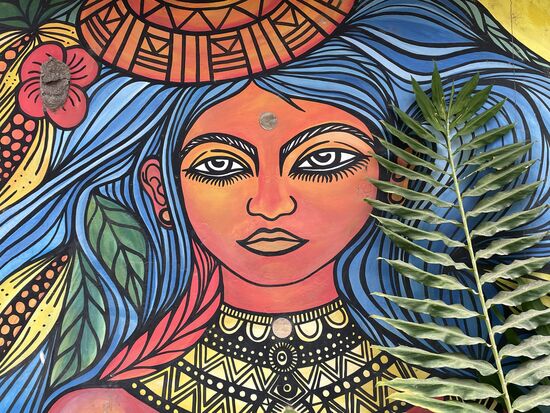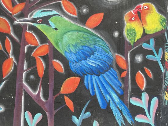 An der langen Mauer beim Dorfeingang gibt es ein paar farbenprächtige Grafittis. Einige davon hat ein Freund von Nina gemalt. Er ist Maler und Tourguide. Im Moment ist er mit ein paar Touristen auf einer mehrtägigen Wanderung.