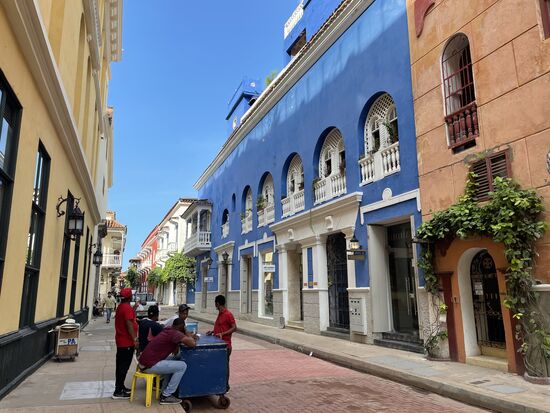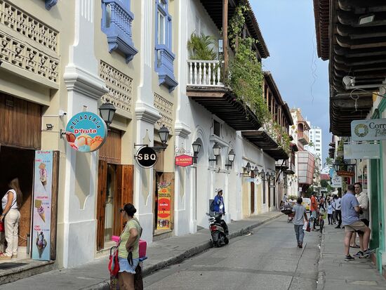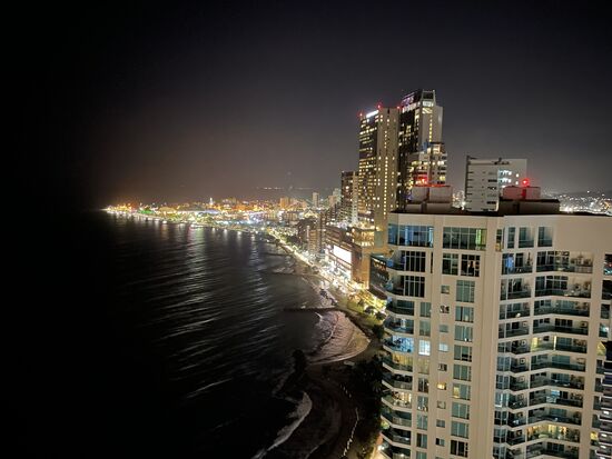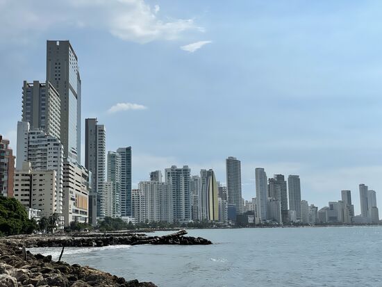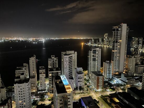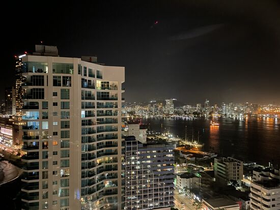 Mein erster Gang führt hinauf zum 30. Stockwerk, wo ich atemlos vor der fantastischen Aussicht stehe. Einfach nur überwältigend. Natürlich wusste ich, dass Cartagena gross ist, aber so weltstadtmässig hatte ich es mir nicht vorgestellt. Beinahe eine Million Menschen leben hier. Cartagna hat den wichtigsten Hafen des Landes und eine eindrückliche Geschichte. Es war schon immer eine bedeutende Stadt.