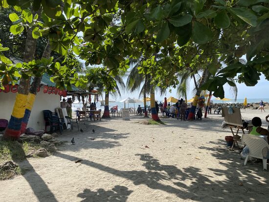 Mein Weg führt dem Meer entlang. Zuerst vorbei an den hohen Hotels auf der einen und den Stränden auf der anderen Seite. Überall gibt es kleine Strandbeizlein unter Palmen und Bäumen. Sie bieten Getränke, vor allem Fruchtdrinks an.