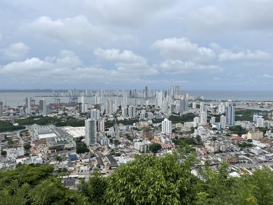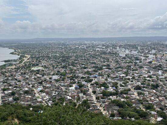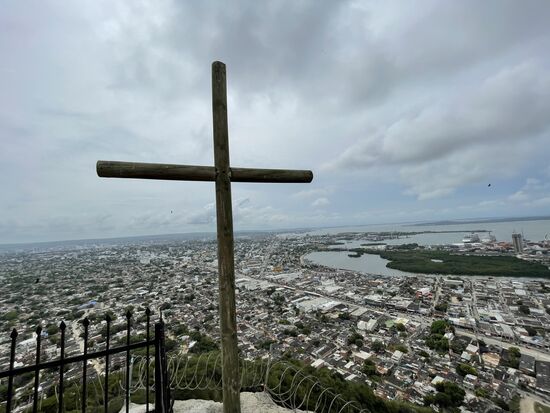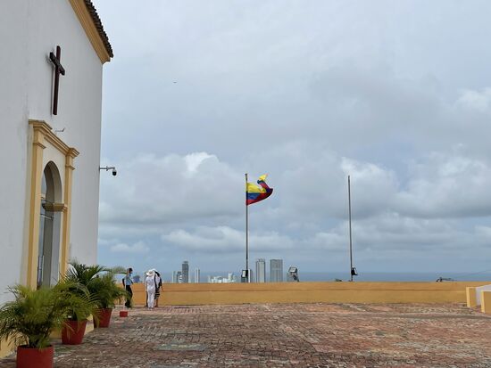 Man sieht ihn auch von meinem Hotel aus, den Hügel de la Popa mit dem Kloster. Hinter der Bucht überblickt man von dort die ganze Gegend. Kein Wunder ist der kleine Berg schon den spanischen Eroberern aufgefallen. Es gab damals eine Legende, dass die Einwohner auf dem Hügel eine Ziege verehrten und diese trieb ihren Schabernack mit den Eroberern indem sie Blitz, Donner, starke Regen und Stürme schickte, die die neu gegründete Stadt regelmässig heimsuchten Darum wurde schon sehr früh ein Augustinerkloster auf dem Hügel gebaut, das der Jungfrau Maria gewidmet war.