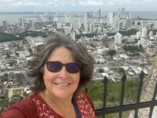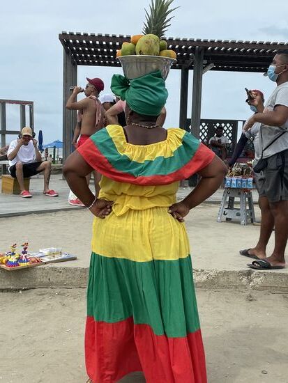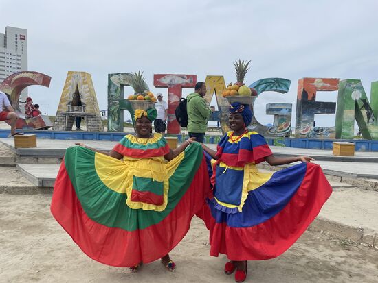 Wir fahren noch zum Schriftzug Cartagena, der Eingangs Stadt am Meer steht. Auch hier stehen wieder Frauen mit ihren bunten Kleidern. Und diesmal habe ich tatsächlich etwas Propina dabei und sie posieren mit ihren farbenprächtigen Roben vor dem Schriftzug für mich.