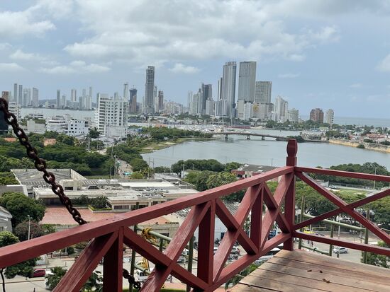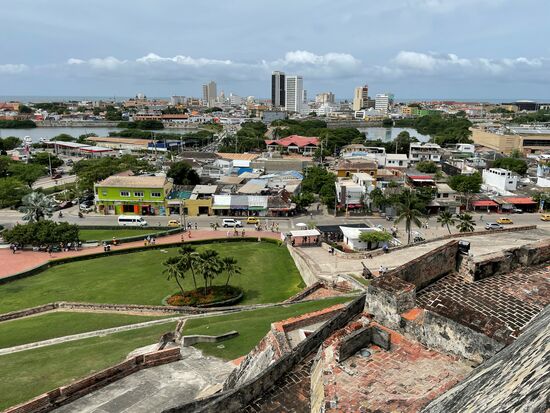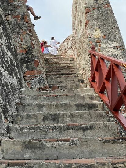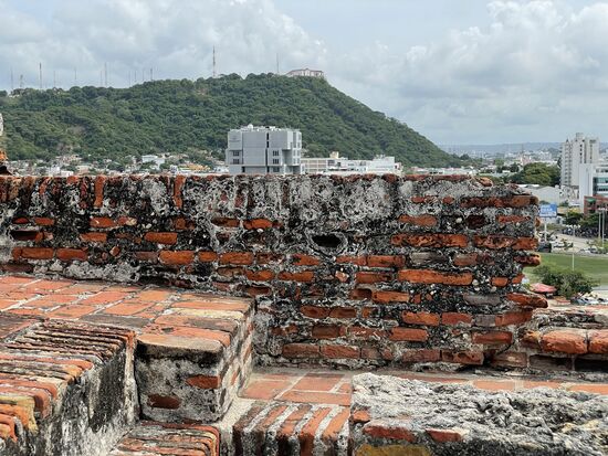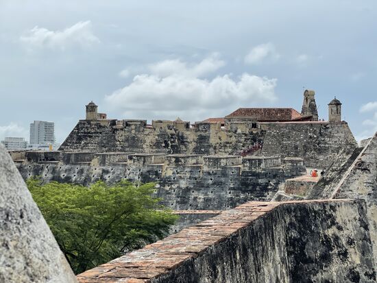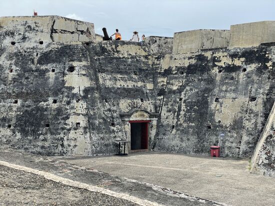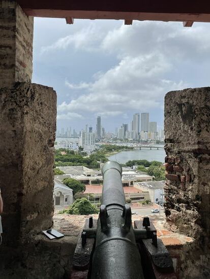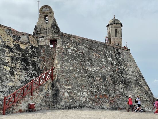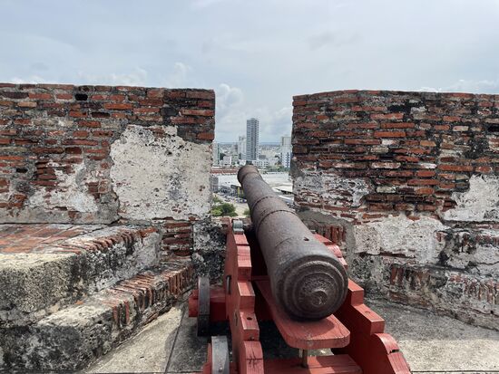 Ich lasse mir Zeit, steige in die unterirdischen Gänge, bewundere die Aussicht von den verschiedenen Plattformen, sehe mir die Kanonen an, die heute auf die Skyline von Cartagena zeigen, früher aber gegen jegliche Angreifer vom See- oder Landweg gerichtet waren. Es gibt noch mehr Festungen und auch eine dicke Mauer, die die Altstadt von Cartagena beschützt, denn der Ort wurde an einem sehr strategischen Ort gebaut.