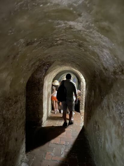 Als nächstes fahren wir zum Castillo San Felipe. So wie die Festung in Callego, Lima wurde sie dem damaligen spanischen König gewidmet. Gebaut wurde es von den Spaniern, um Piraten und jegliche Invasoren schon von weitem zu rekennen. Es ist eine starke Festung mit dicken Mauern. Darin gibt es unterirdische Gänge, richtige Labyrinthe. Diese wurden angelegt, um einerseits den Soldaten zu ermöglichen, übrerall und jederzeit auf den Mauern aufzutauchen und andererseits, um allfällige Eindringlinge zu verwirren und ein Vordringen zu verhindern. Heute für die Touristen gibt es keine Unsicherheiten. Die Gänge sind nur sehr beschränkt begehbar und man ist auch gleich wieder an der Luft. Allerdings tatsächlich an einem komplett anderen Ort, als da wo man hinein gegangen ist. Auf einer anderen Plattform oder in einer anderen Himmelsrichtung.