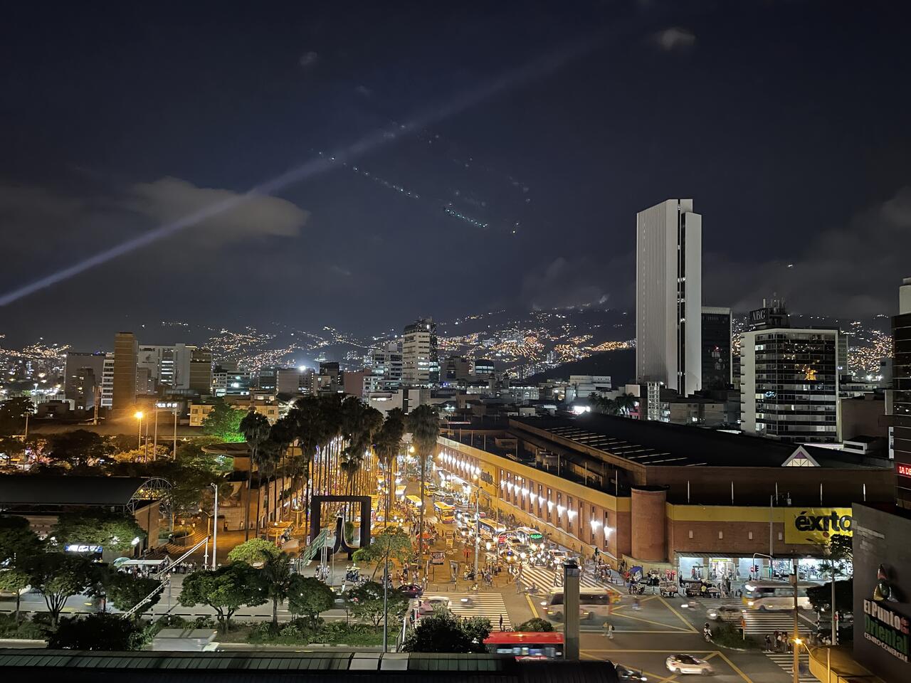Den Abend verbringe ich auf der Dachterrasse, geniesse die freie Aussicht über die Stadt. Links kann ich den Parque de Luces mit den hohen Lichtsäulen erkennen und geradeaus muss der Boteroplatz sein. Rechts leuchtet das Dach des Coltejer-Hochhauses, des höchsten Gebäudes der Stadt. Unter mir pulsiert der Verkehr der Grossstadt pausenlos.