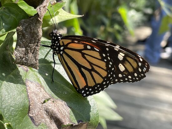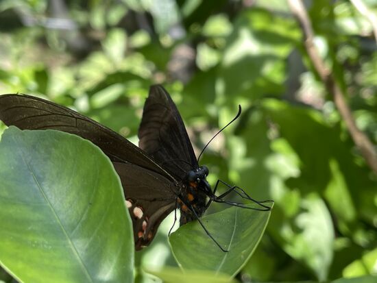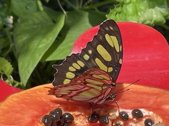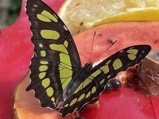 Mein erster Gang geht ins Mariposario. Diesmal erkläre ich der jungen Frau, die die Führungen macht, dass ich bereits zum dritten Mal hier und eigentlich nur zum Fotografieren gekommen sei. Ich möchte daher nicht mit der Gruppe ihren Erklärungen folgen. Zum Glück akzeptiert sie das, vielleicht erinnert sie sich an mich, denn ich wollte letztes Mal die Voliere fast nicht mehr verlassen. Der Eintritt ist sehr limitiert. Jede halbe Stunde darf eine Gruppe geschlossen hinein gehen und muss dann als Gruppe den Wegen entlang gehen, bis die Frau ihre Erklärungen abgechlossen hat. Und dann ist auch schon fast wieder der Zeitpunkt zum gehen.