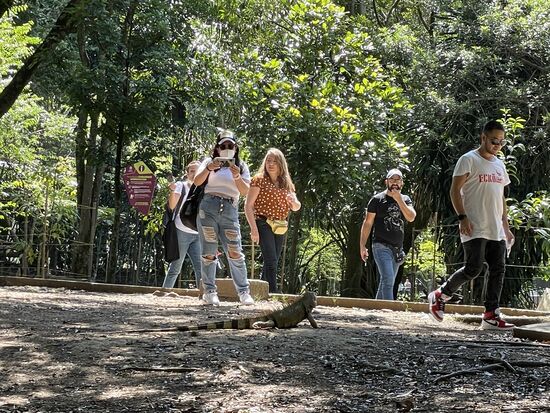 Ich bleibe einfach sitzen, schaue und staune, während andere Leute kurz stehen bleiben, Selfies machen, auf dem man auch einen der Leguane sieht und dann weiter gehen.