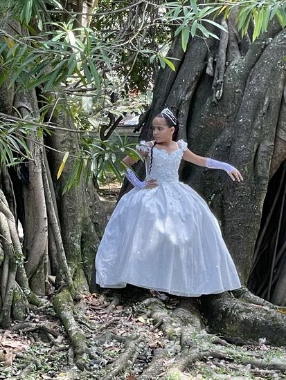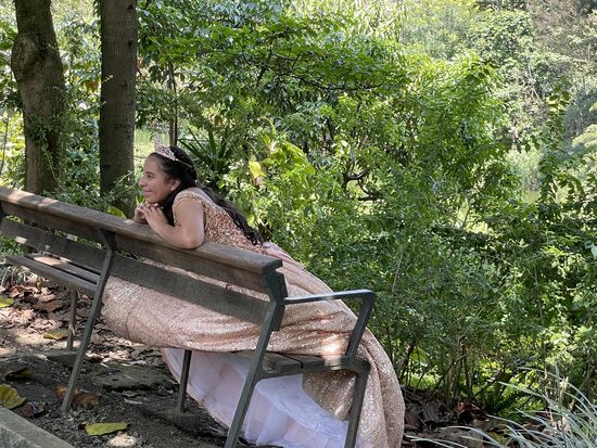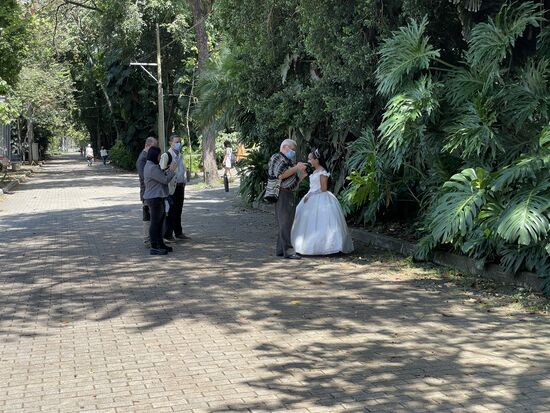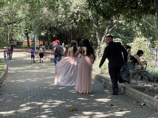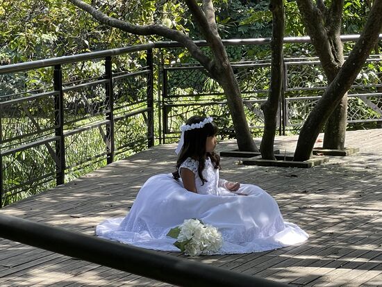 Die wunderschöne Kulisse mit den vielen riesigen Pflanzen zieht natürlich auch wieder die Fotografen an. Und mit ihnen die 15-jährigen Mädchen. Gleich drei verschiedenen Gruppen bin ich begegnet. Wobei vor allem die beiden in ihren weissen Hochzeitskleidern jünger als 15 aussahen, wohingegen die junge Dame im apricot-Kleid schon eher älter aussah und auch entsprechend geschminkt war. Sie ist mit den Eltern da, ihre Mutter trägt ein langes Kleid in der gleichen Farbe. Fotografiert wird sie wahrscheinlich von ihrem Bruder.